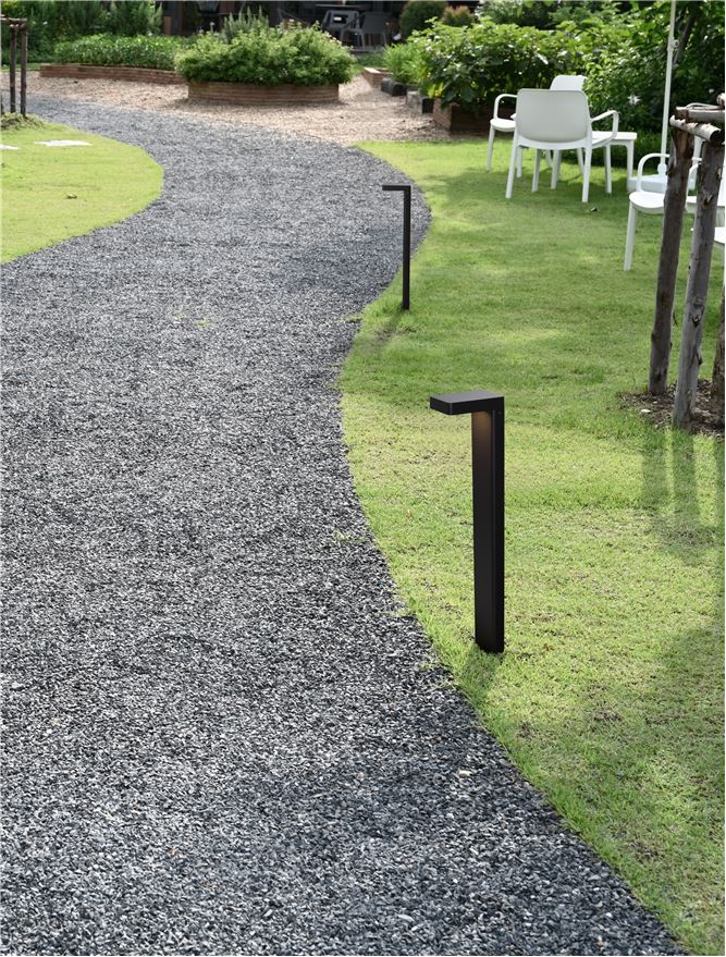 - Kompaktiškas (~65 cm aukščio) dizainas leidžia montuoti šviestuvą takų, terasų ar sodų kraštuose, suteikiant stilingą ir funkcionalų apšvietimą.