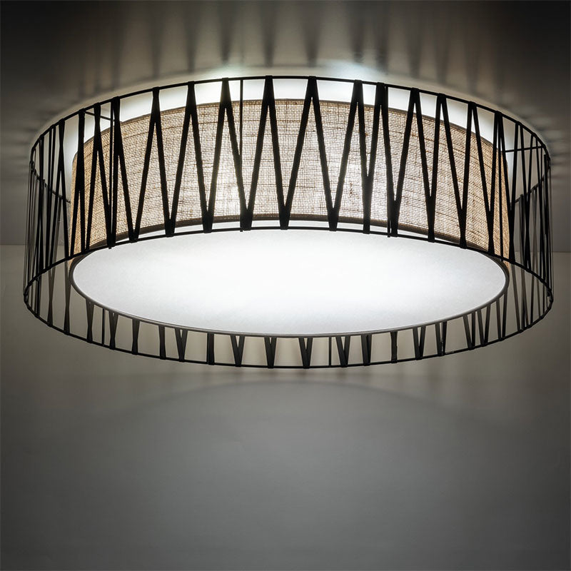 Elegantiškas lubinis šviestuvas „Harmony Nature“ derina natūralų audinį (juta) su metaline konstrukcija, sukurdamas šiltą, bohemišką atmosferą moderniame interjere. Platus (~72 cm diametro) formatas leidžia šviestuvui tapti pagrindiniu apšvietimo akcentu svetainėje, valgomajame ar koridoriuje.
