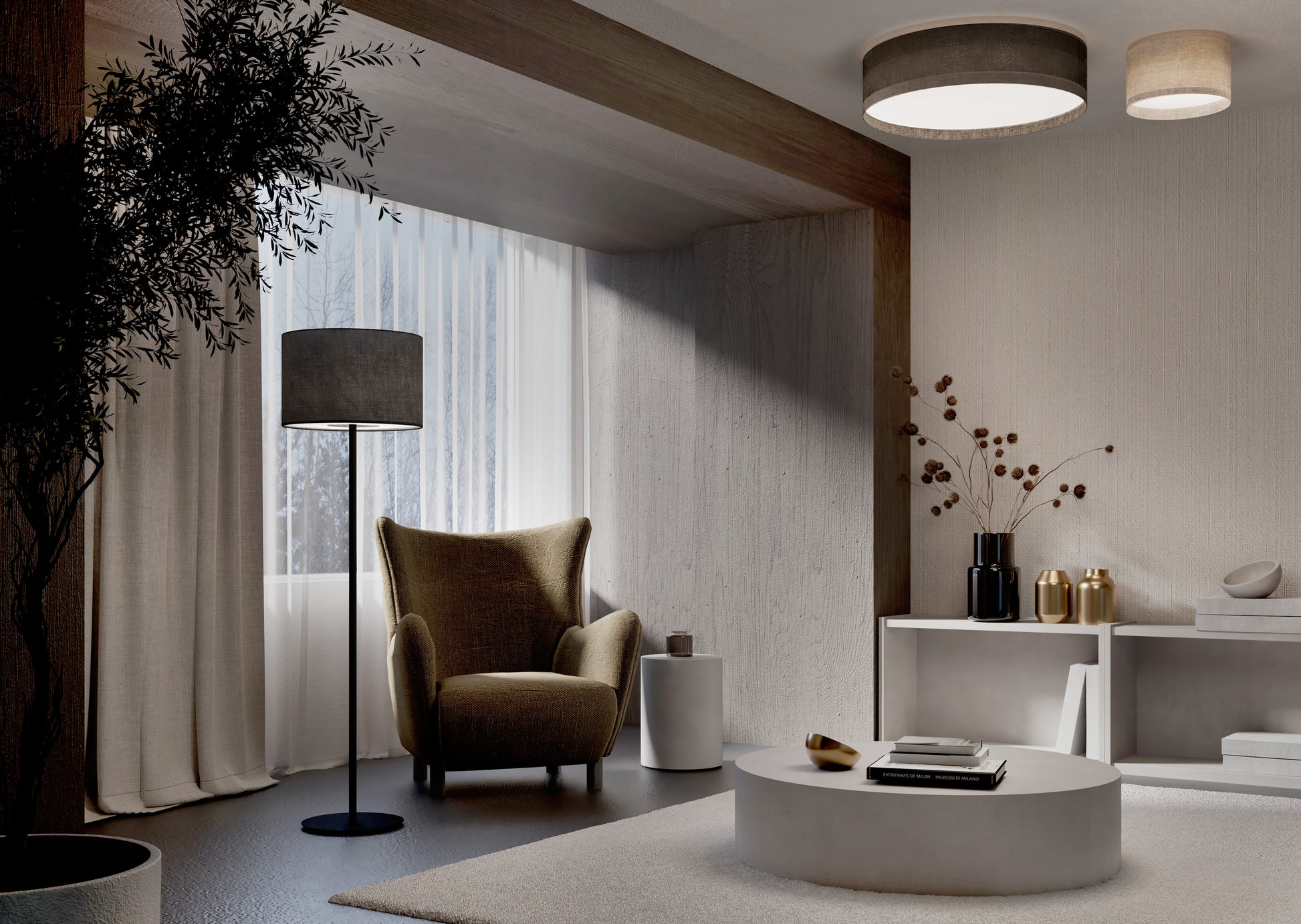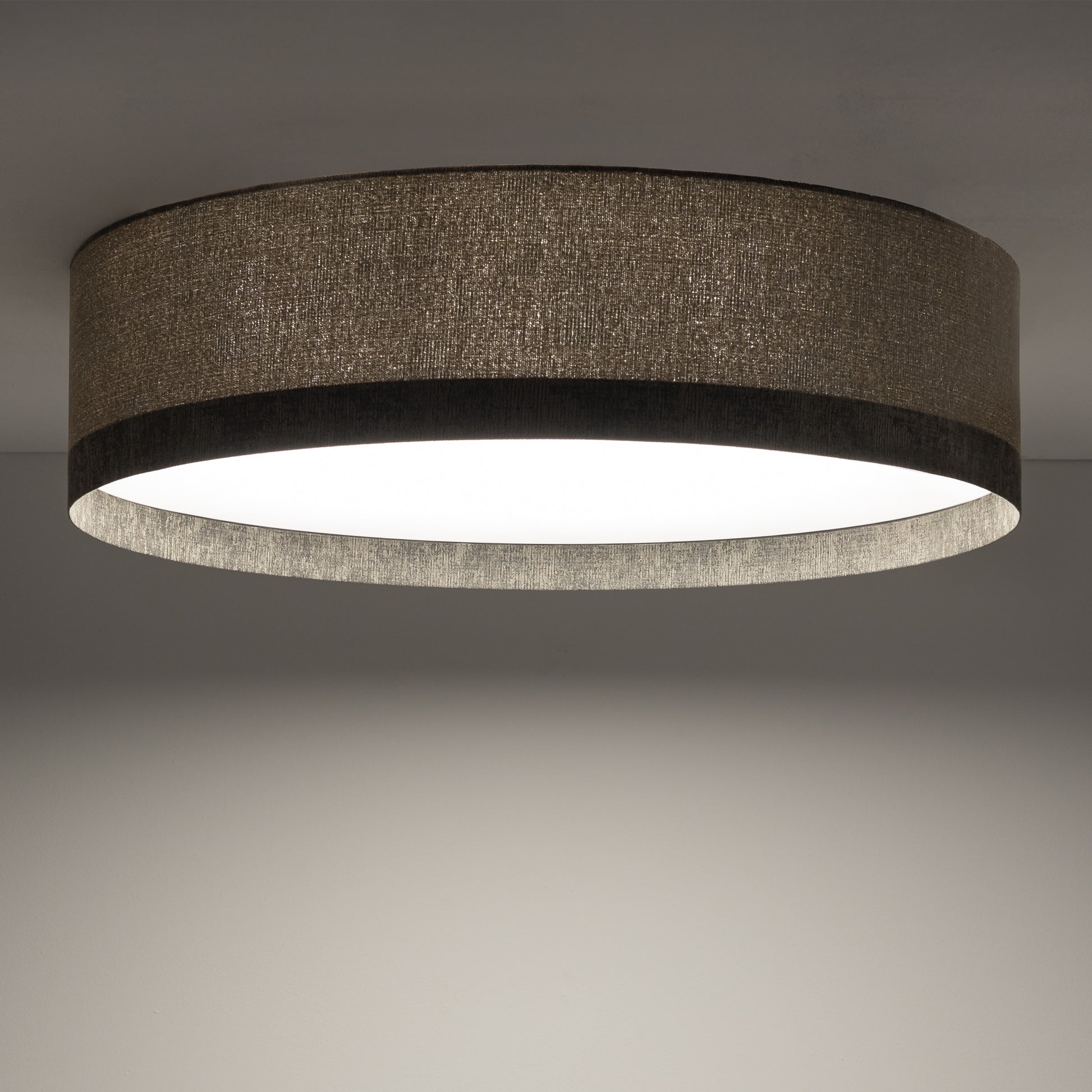 Šis išraiškingas lubinis šviestuvas „LAGO L“ puikiai tinka moderniems ir prabangiems interjerams, tokiems kaip svetainės, valgomojo zonos ar erdvios koridoriai. Didelis 78 cm skersmuo sukuria įspūdį, o natūrali medžiagų kombinacija – metalinio korpuso, audinio (ar tekstūruoto apdailos) ir plastiko – pabrėžia dizaino subtilumą.