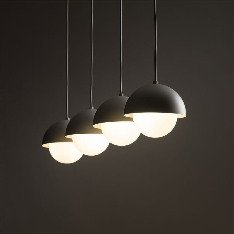 - Keturi žibintai ant vienos juostos suteikia simetrišką ir vizualiai stabilų apšvietimą, puikiai tinkantį virš valgomojo ar baro.