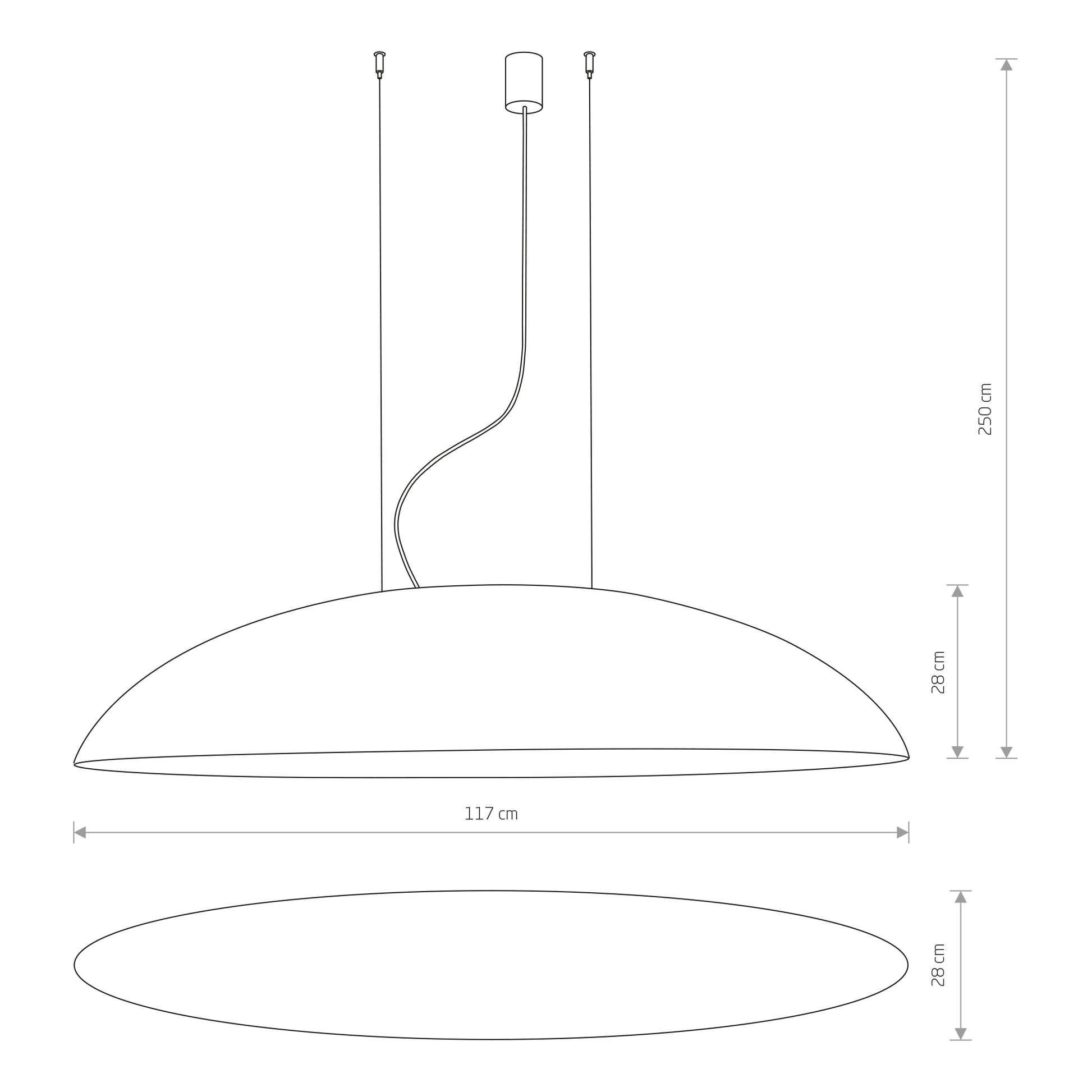 - Didesnis ~117 cm ilgio korpusas idealiai tinka virš valgomojo stalų arba salų, kur norima vieno tvirto apšvietimo elemento.
