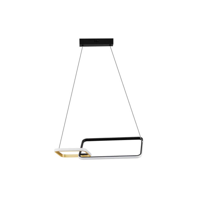 Šiuolaikiškas pakabinamas šviestuvas „IMAR“, kuriame minimalistinis apskritimo ir kvadrato formos derinys su juodos ir aukso spalvos akcentais suteikia interjerui rafinuotą ir stilingą išvaizdą. Puikiai tiko svetainėms, valgomojo zonoms ar reprezentacinėms erdvėms, kur norima modernios estetikos su šiltu apšvietimu.