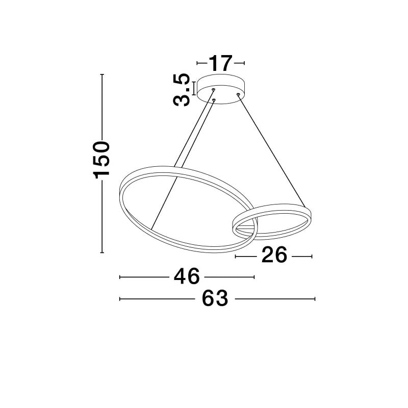 - Didelis ~63 cm diametras ir iki ~150 cm pakabinimo ilgis leidžia šviestuvą montuoti tiek žemose, tiek aukštose erdvėse su komfortu.