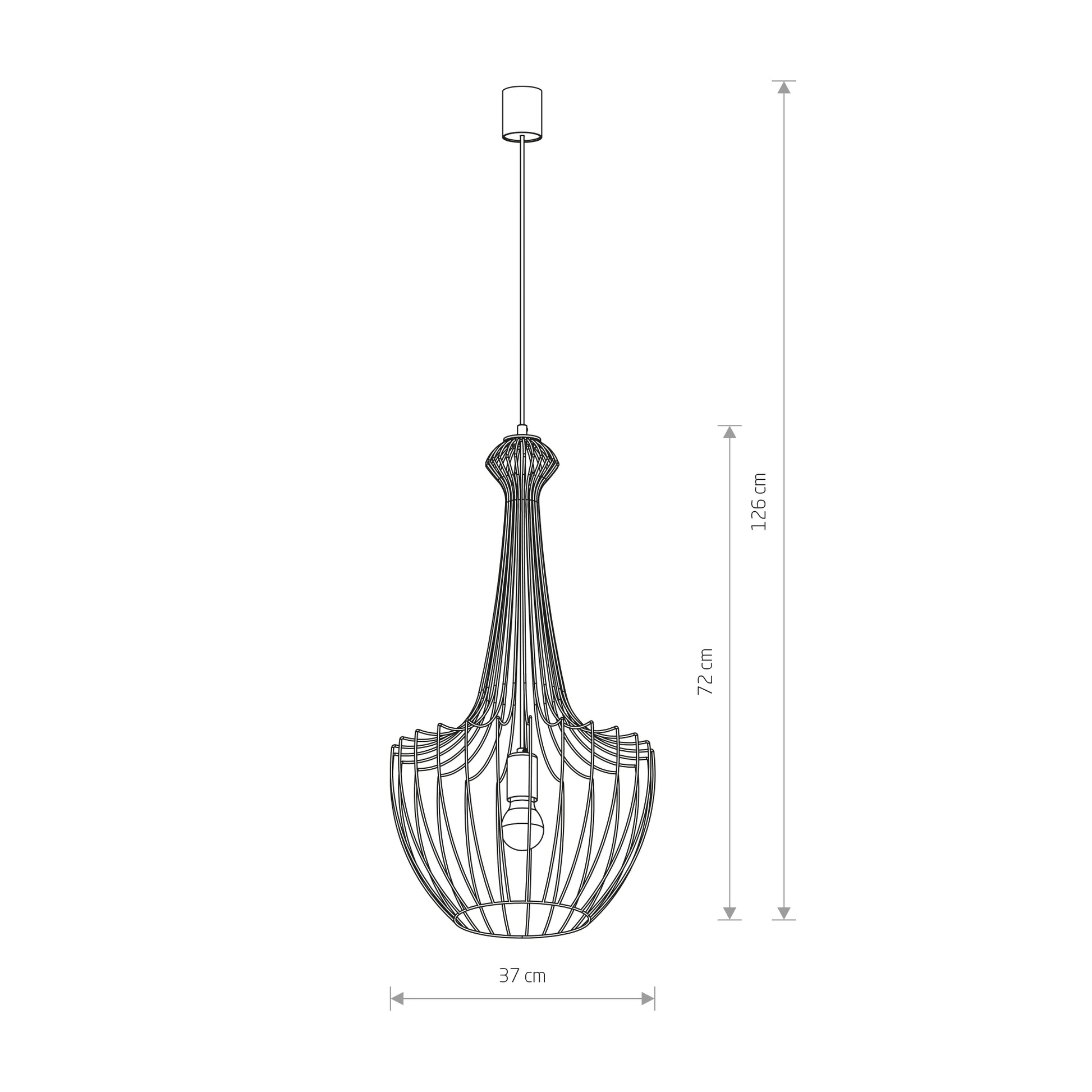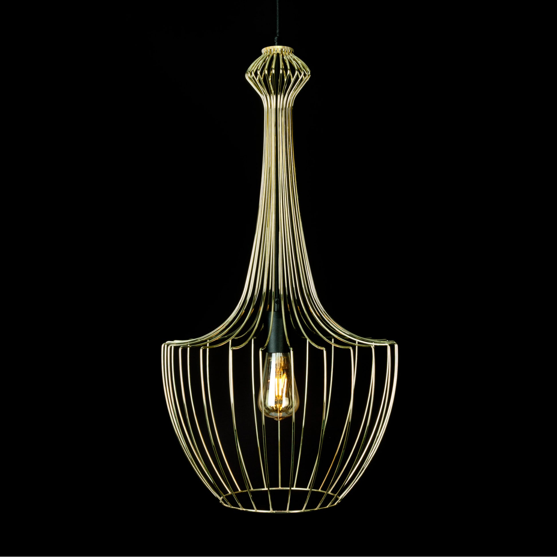 Prabangus pakabinamas šviestuvas „LUKSOR S“ su aukso spalvos korpusu bei elegantišku tinklinio dizaino gaubtu. Idealiai tinka gyvenamajam kambariui, valgomojo erdvei ar reprezentacinei zonai, kur reikalingas stilingas apšvietimo akcentas.