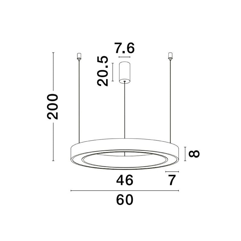 | Matmenys | Skersmuo D1 ~60 cm, D2 ~46 cm • Maks. pakabinimo aukštis ~200 cm |