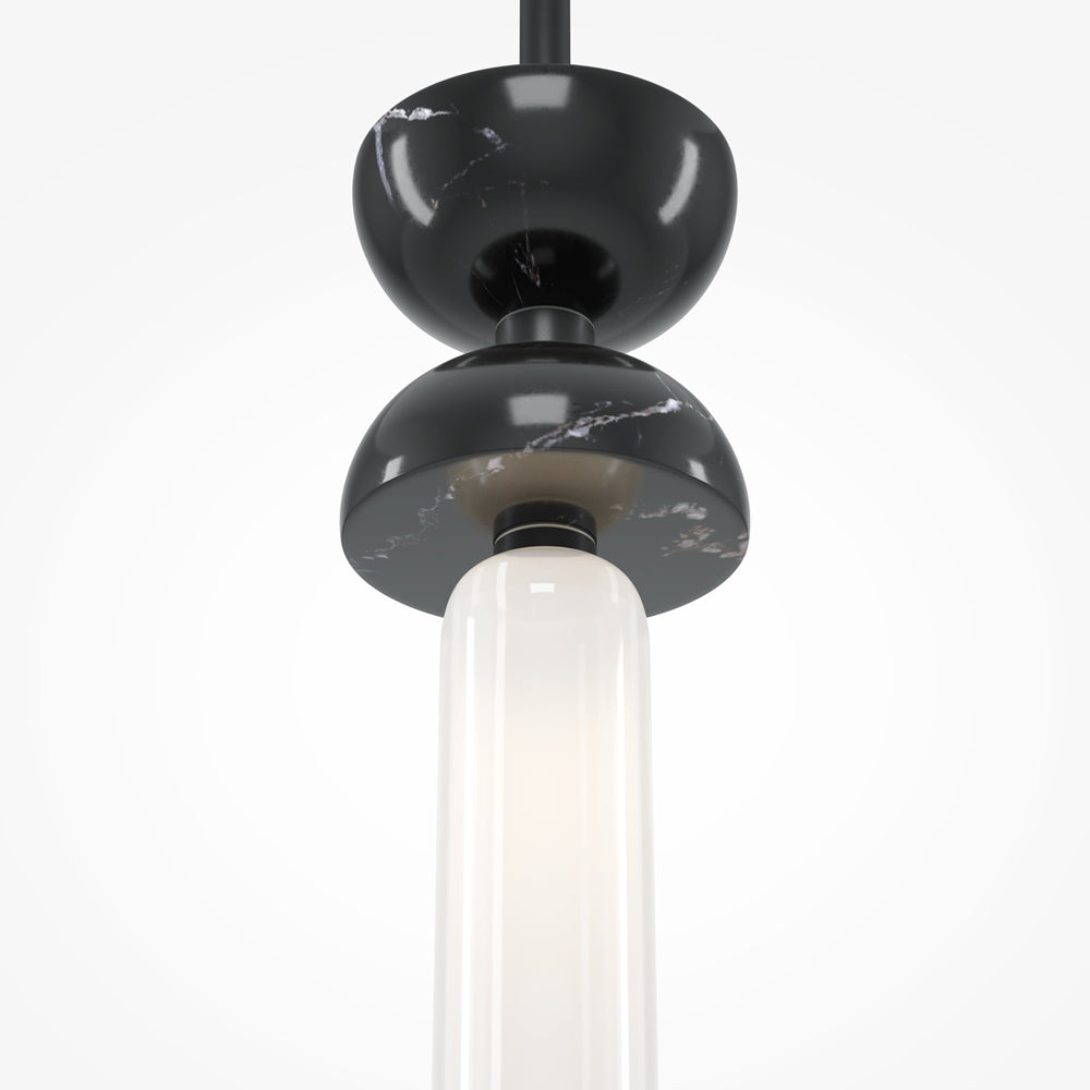 Pakabinamas šviestuvas „Kyoto“ (MOD178PL-01B) yra elegantiškas ir modernus apšvietimo sprendimas, įkvėptas senovės Japonijos sostinės architektūros. Šviestuvo dizainas sujungia blizgų, pusiau permatomą baltą stiklą ir marmuro pagrindą, primenančius Kioto pagodų ir rūmų siluetus.