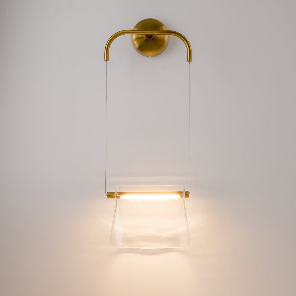 Dizainas: Šviestuvas įkvėptas modernios kabareto estetikos, pasižymi sklandžiomis linijomis ir unikaliu skaidraus stiklo gaubtu, primenančiu lengvą tekstilę.